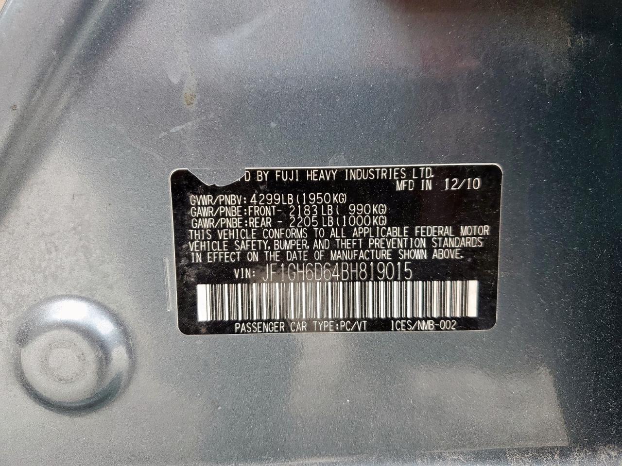 - ВИН: JF1GH6D64BH******