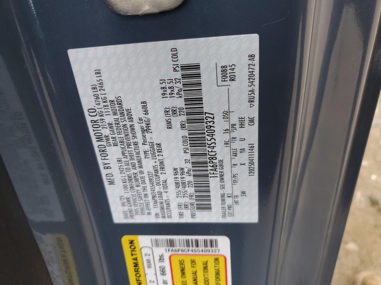 - ВИН: 1FA6P8CF4S5******