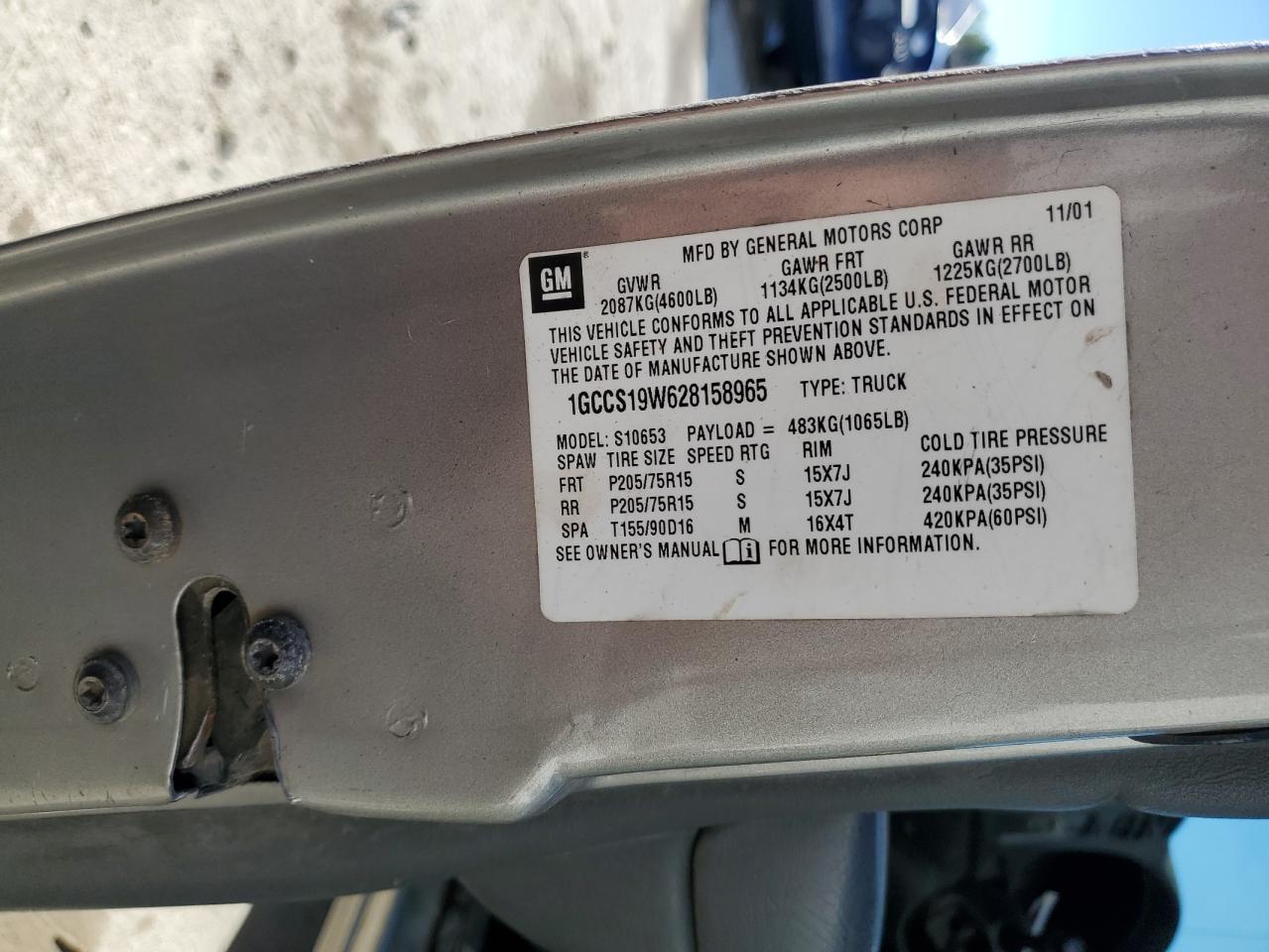 2002 CHEVROLET S TRUCK S10
