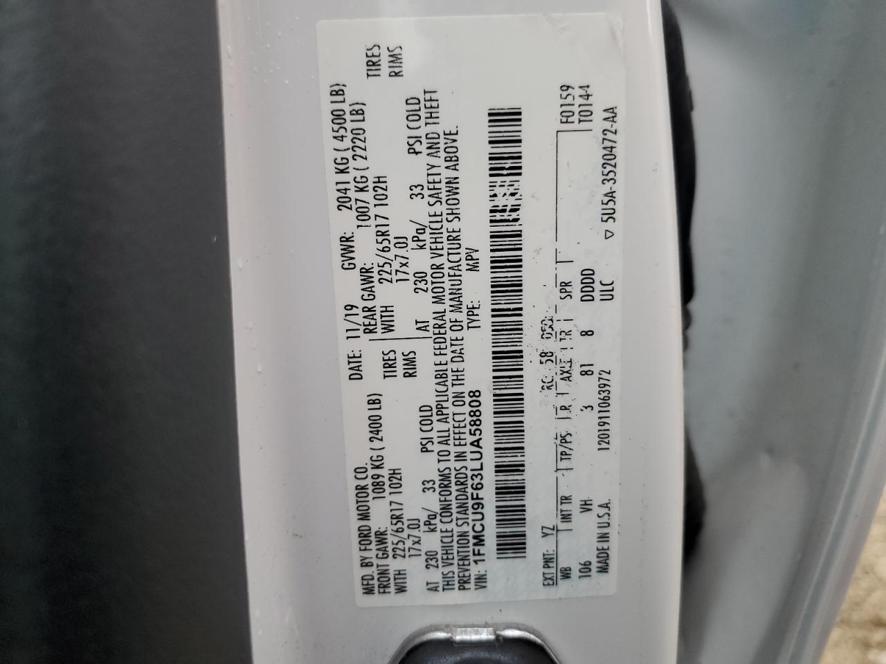 - ВИН: 1FMCU9F63LU******