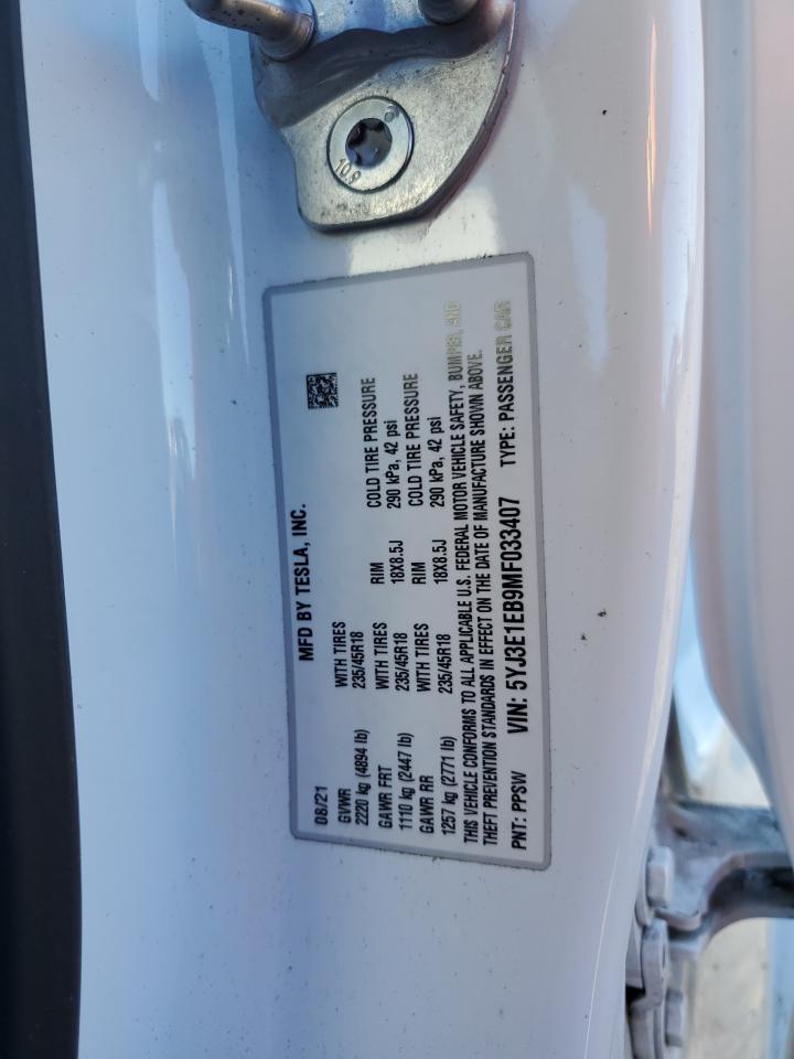 - ВИН: 5YJ3E1EB9MF******