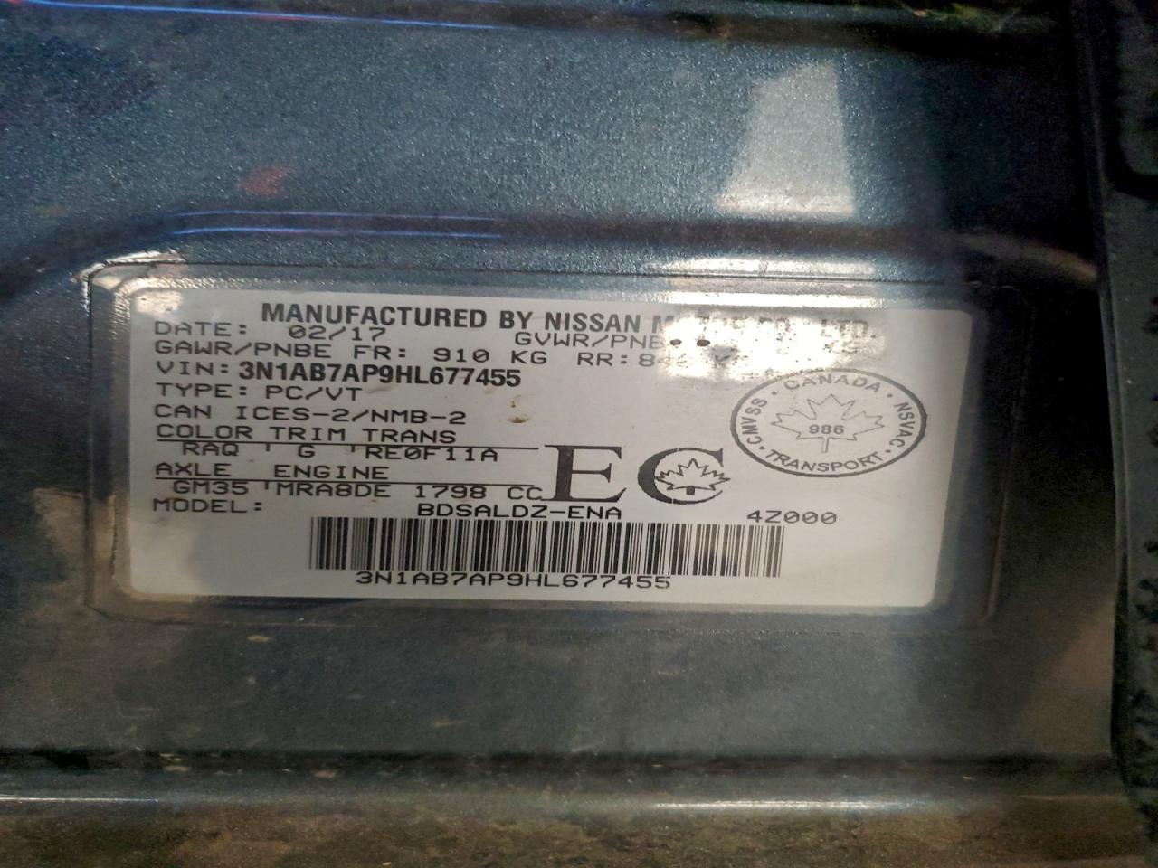 - ВИН: 3N1AB7AP9HL******