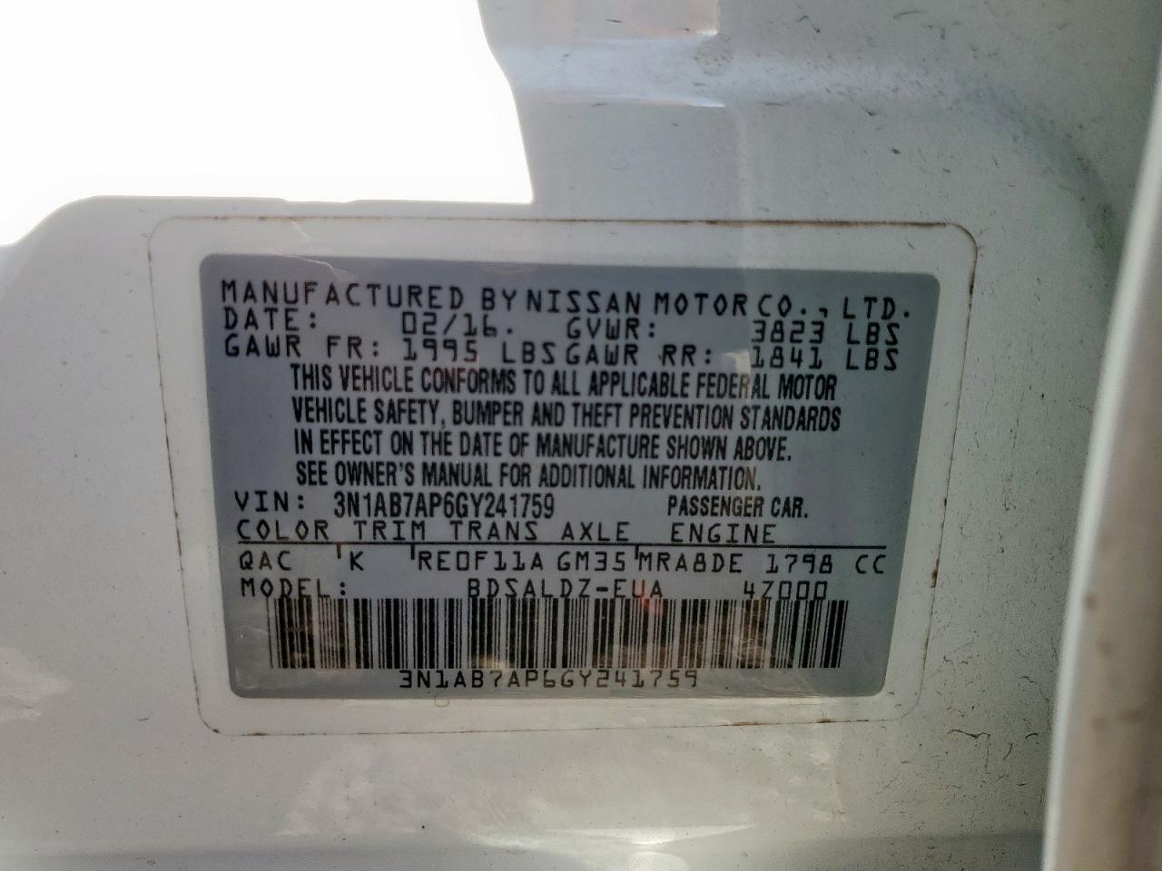 - ВИН: 3N1AB7AP6GY******