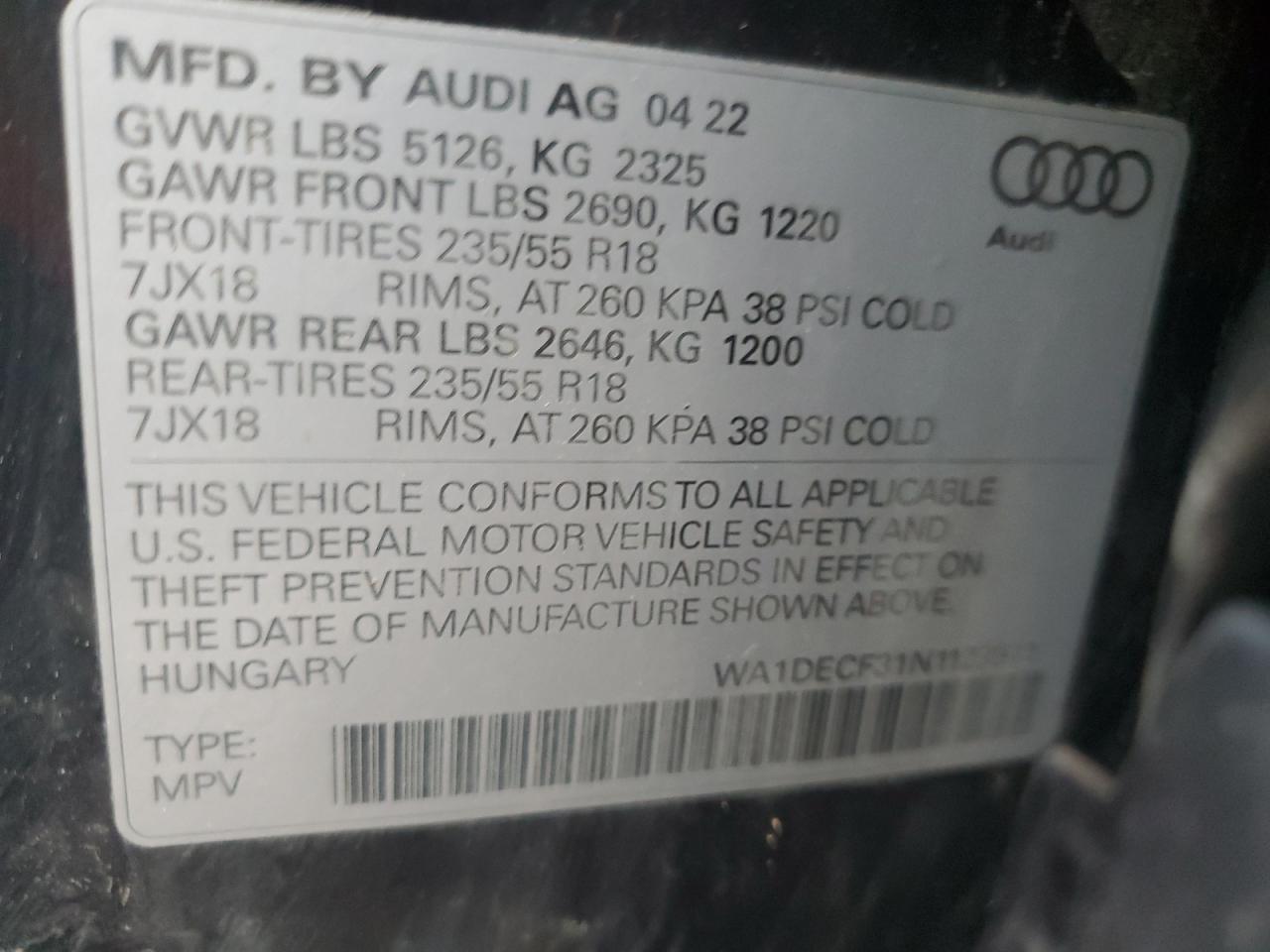 - ВИН: WA1DECF31N1******