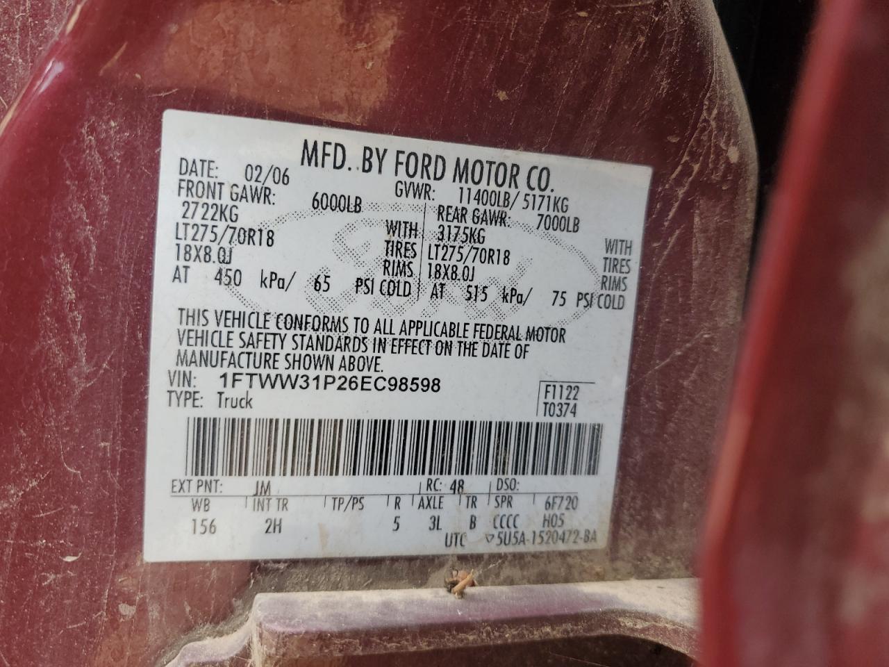 - ВИН: 1FTWW31P26E******