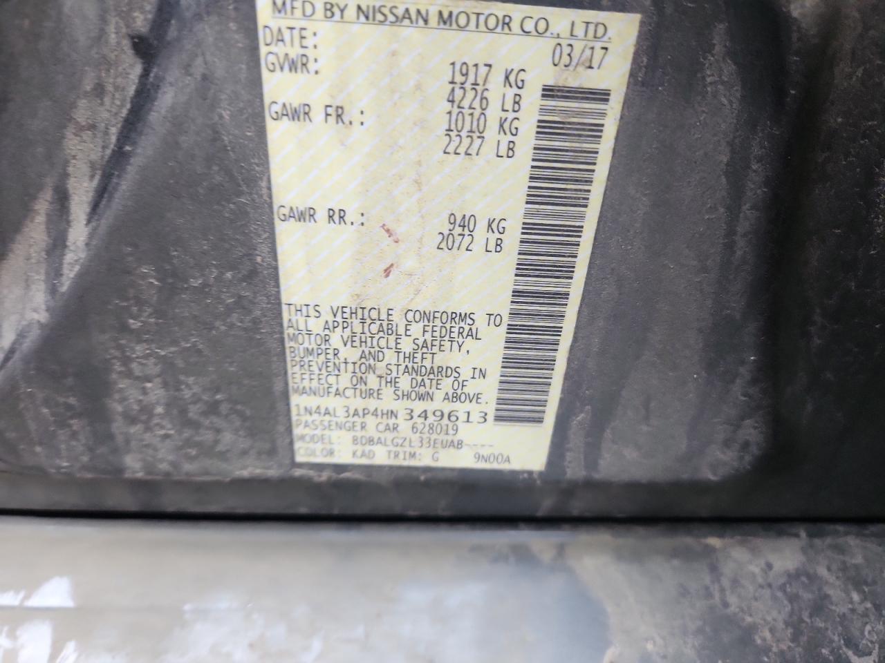 - ВИН: 1N4AL3AP4HN******