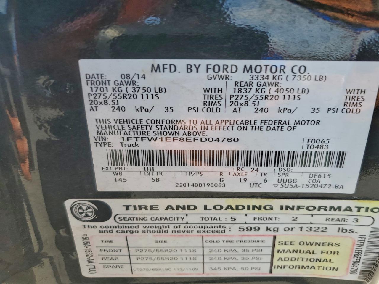 - ВИН: 1FTFW1EF8EF******