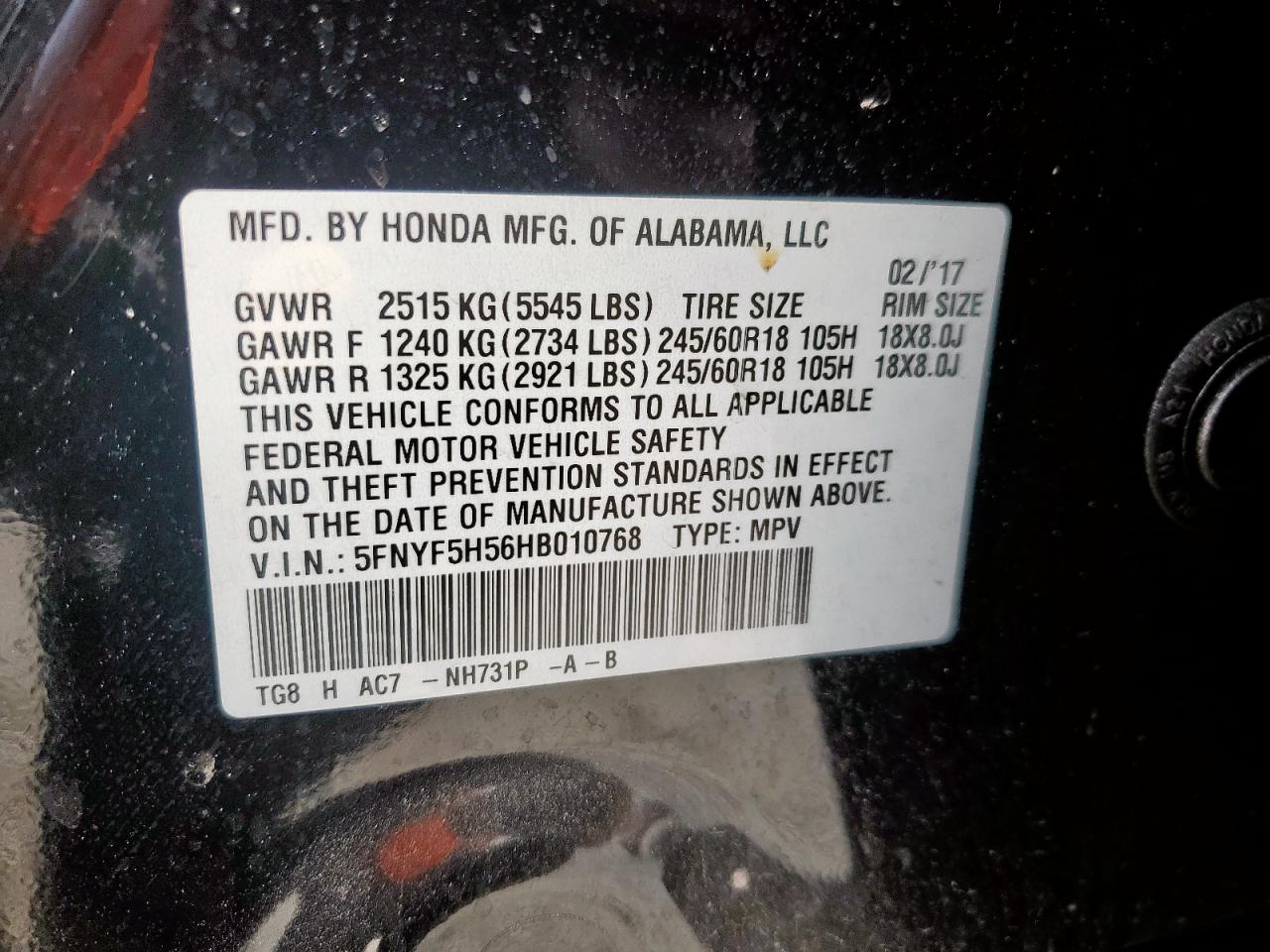 - ВИН: 5FNYF5H56HB******