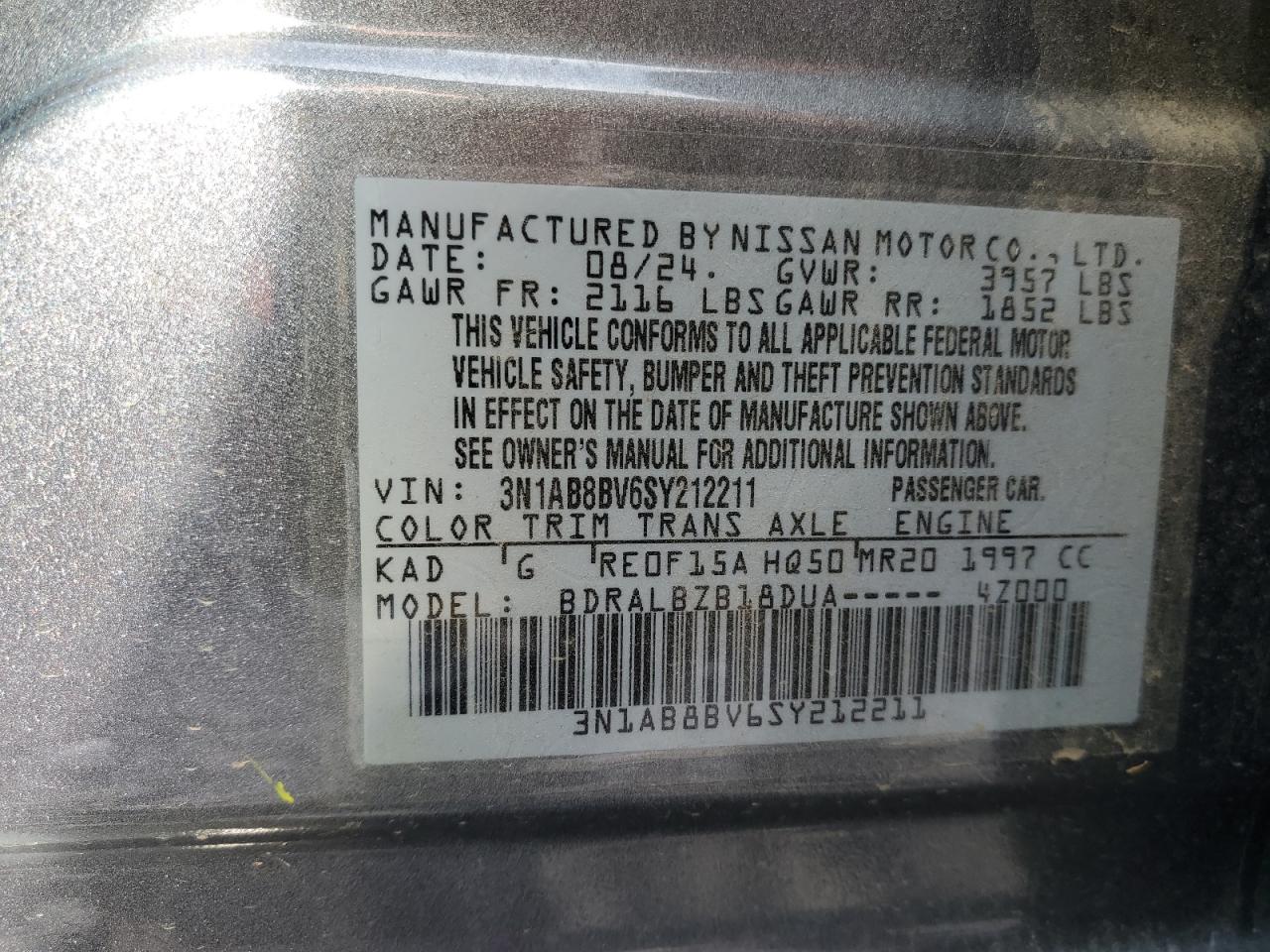 - ВИН: 3N1AB8BV6SY******