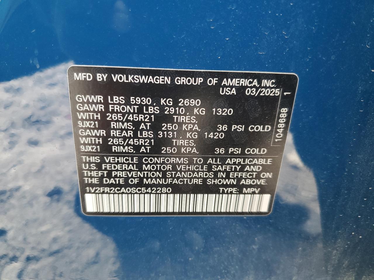 - ВИН: 1V2FR2CA0SC******