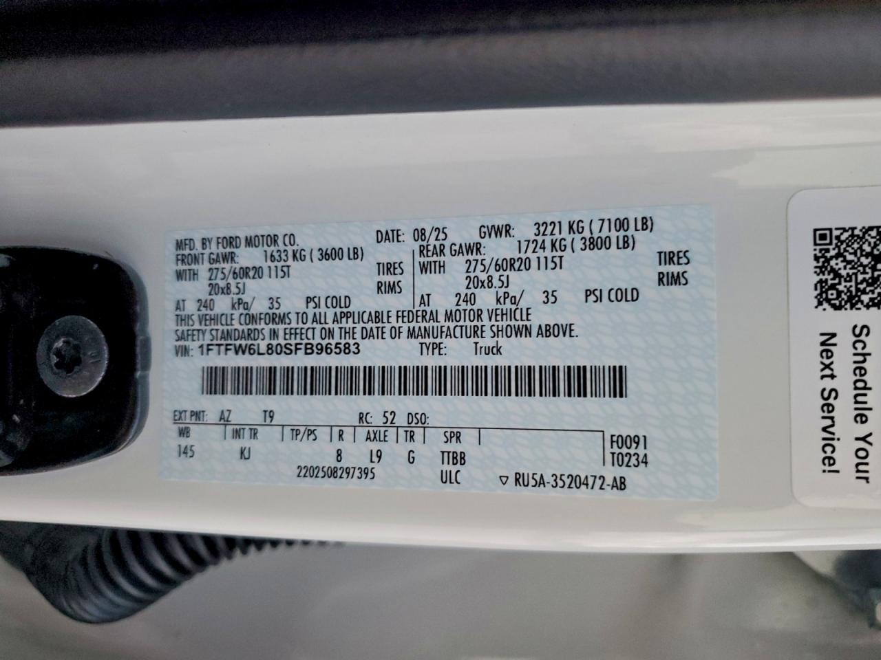 - ВИН: 1FTFW6L80SF******
