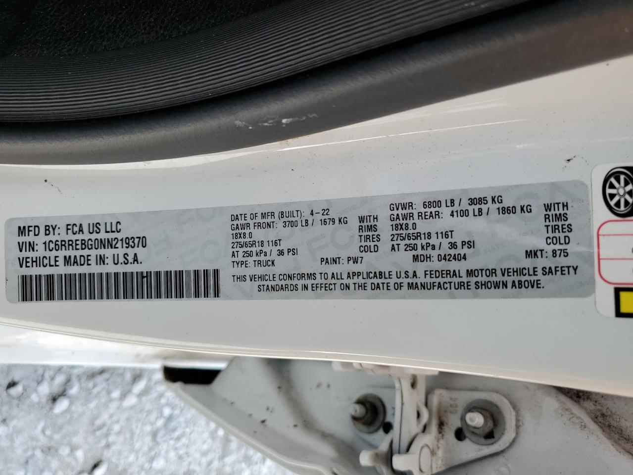 - ВИН: 1C6RREBG0NN******