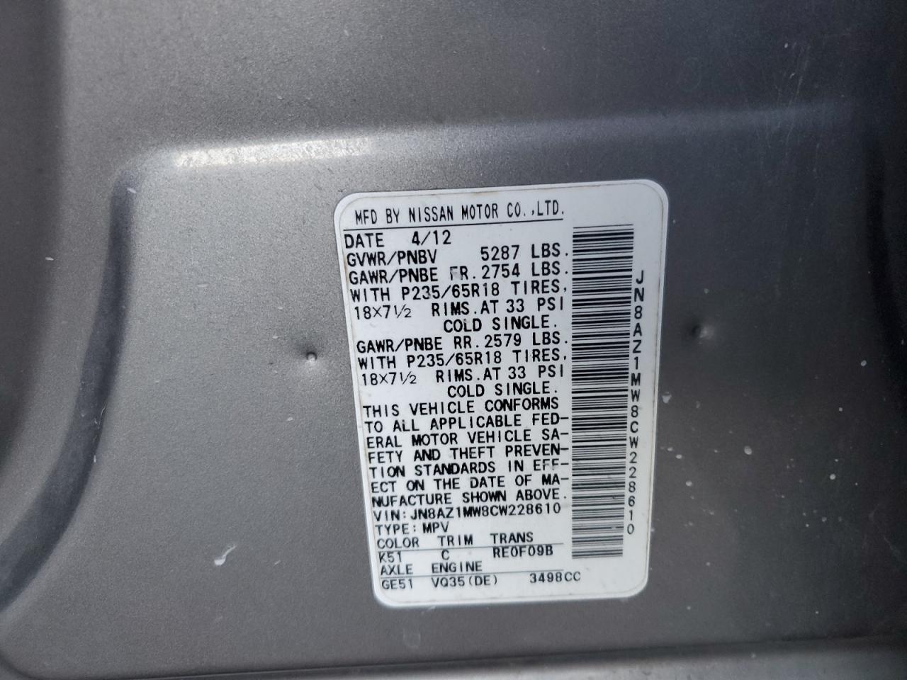 - ВИН: JN8AZ1MW8CW******