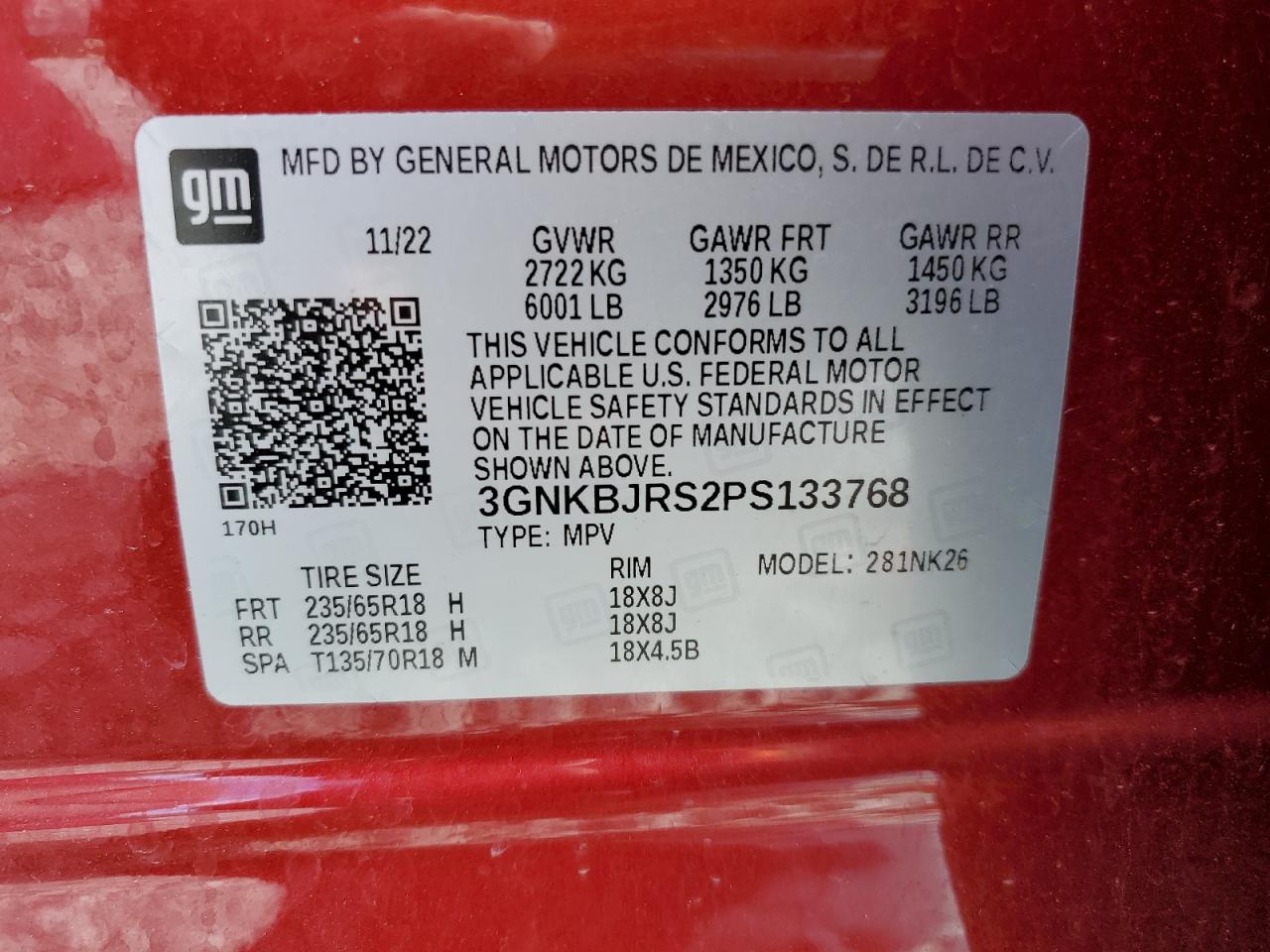 - ВИН: 3GNKBJRS2PS******