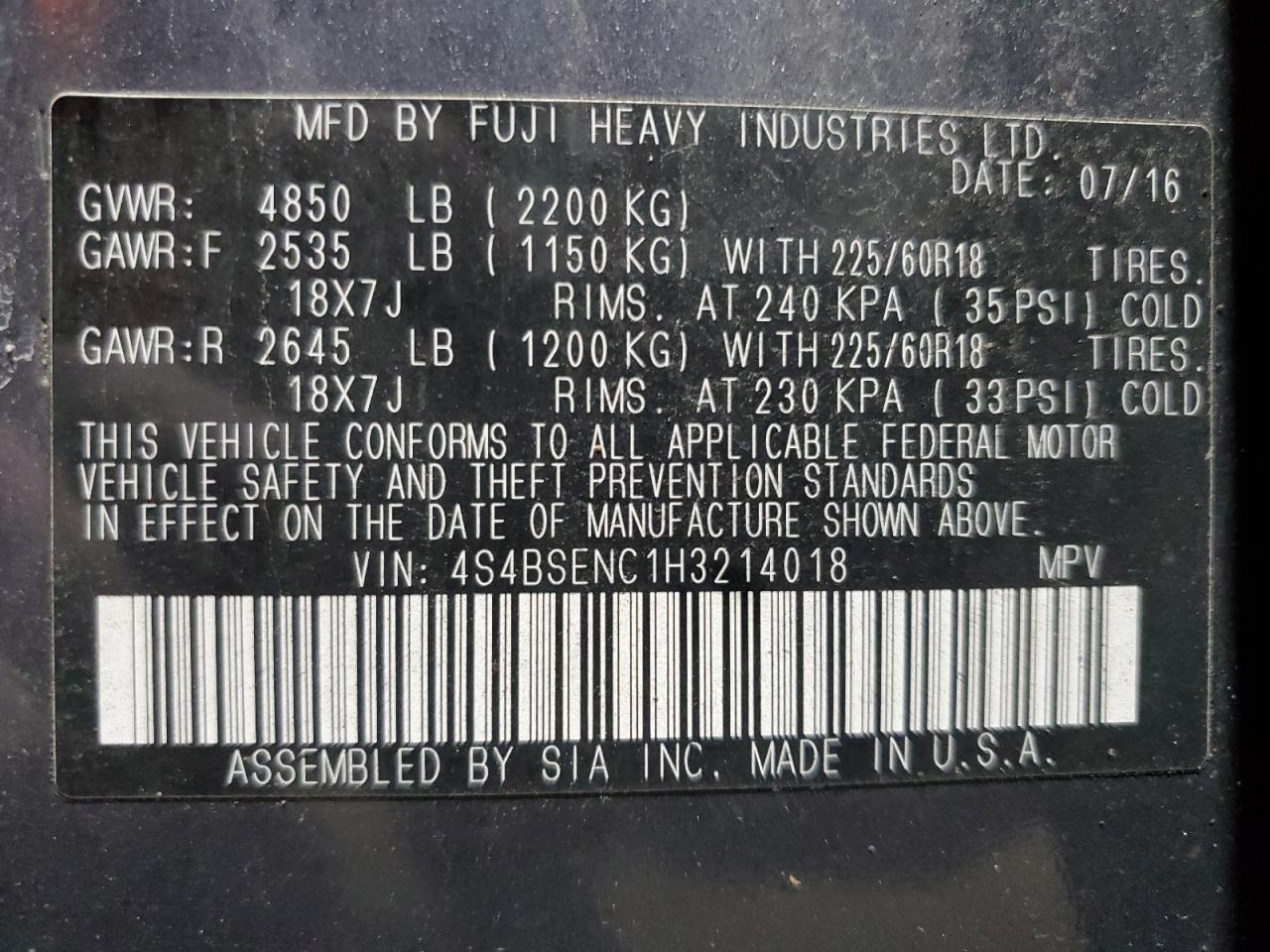 - ВИН: 4S4BSENC1H3******