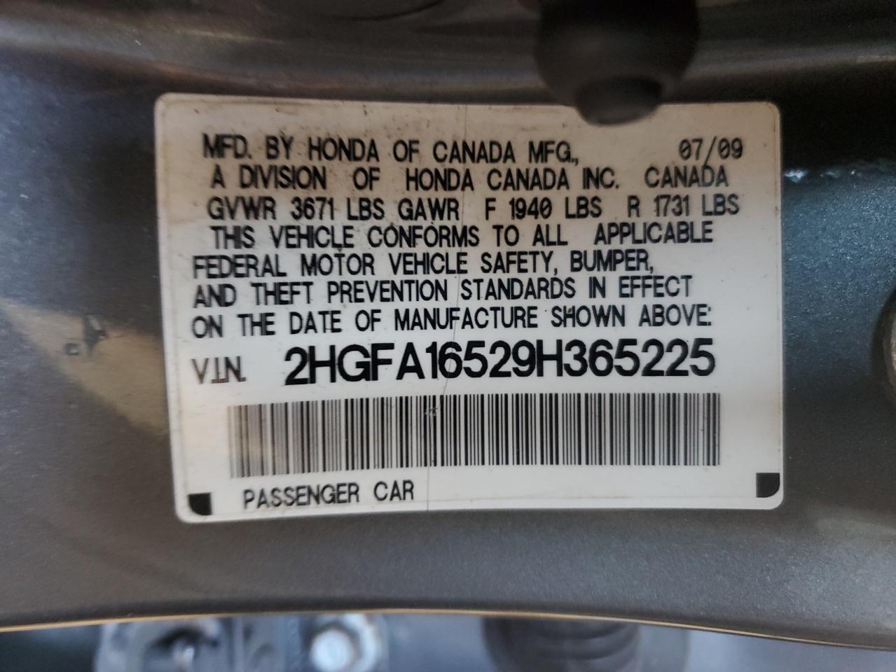- ВИН: 2HGFA16529H******