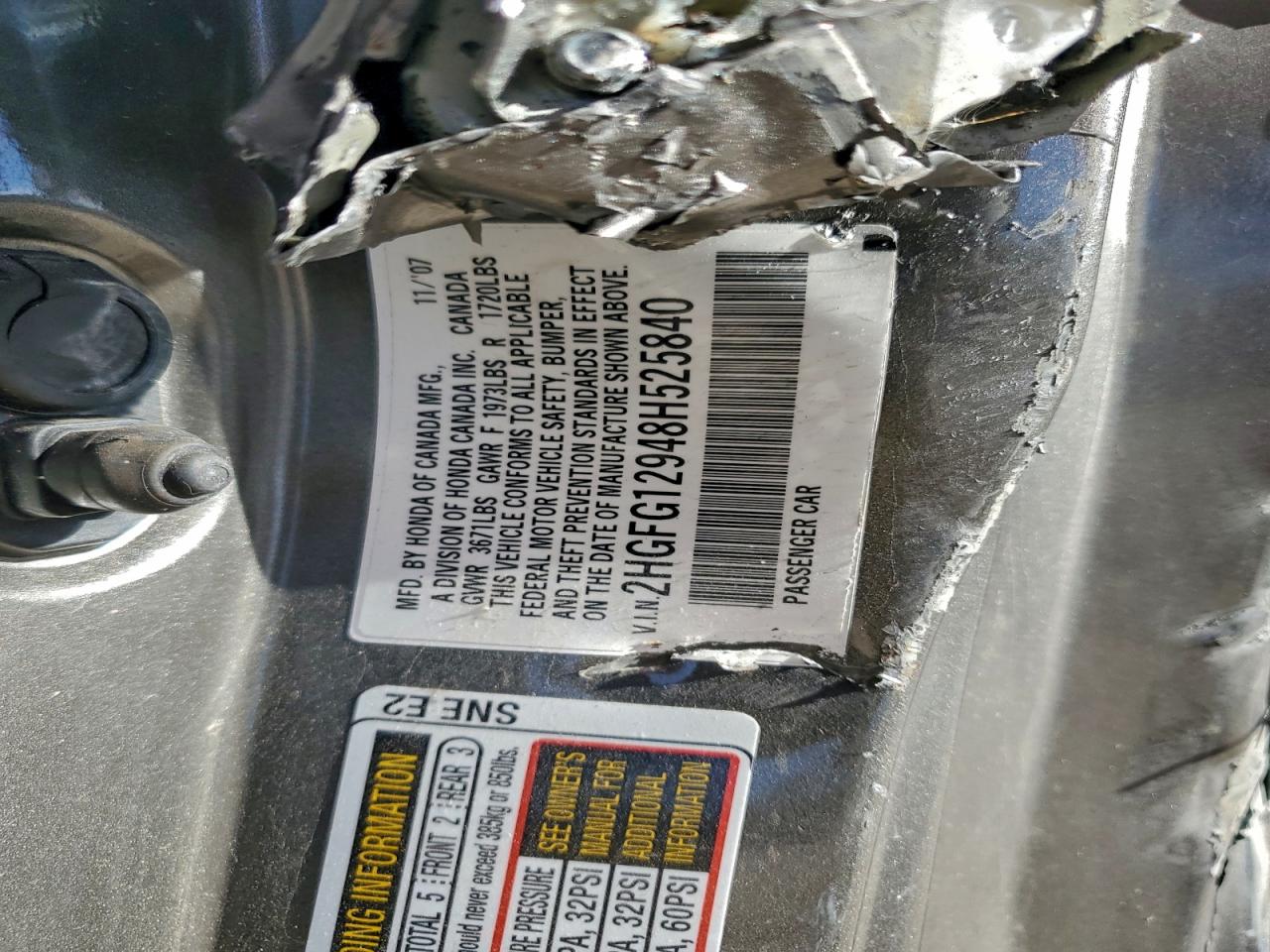 - ВИН: 2HGFG12948H******