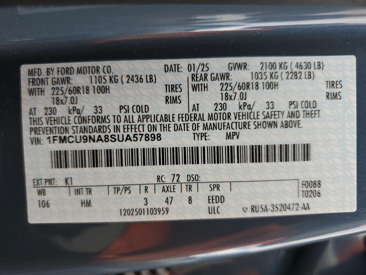 - ВИН: 1FMCU9NA8SU******