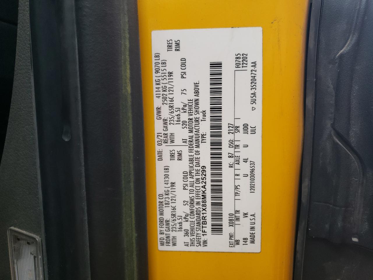 - ВИН: 1FTBR1X88MK******