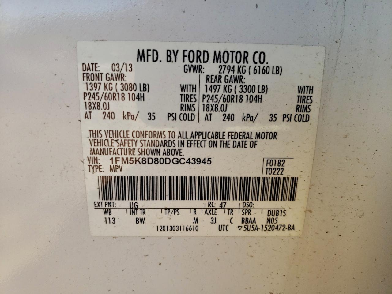 - ВИН: 1FM5K8D80DG******
