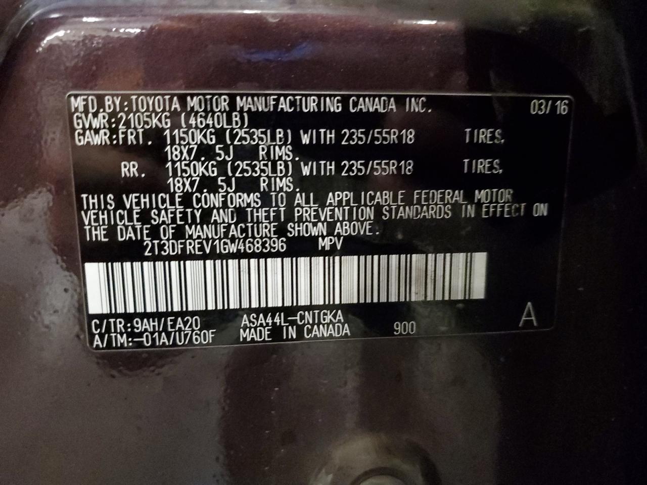 - ВИН: 2T3DFREV1GW******