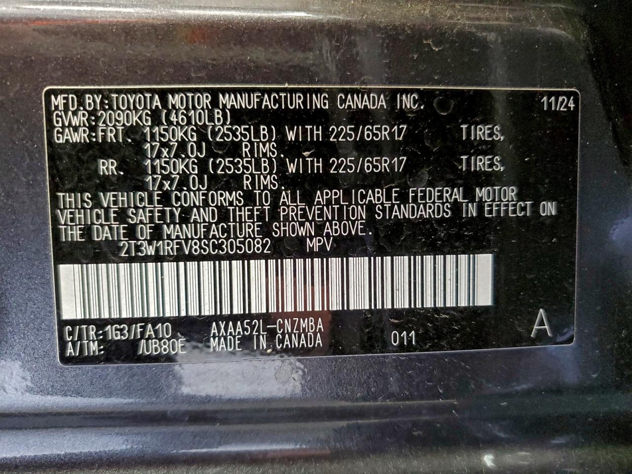 - ВИН: 2T3W1RFV8SC******