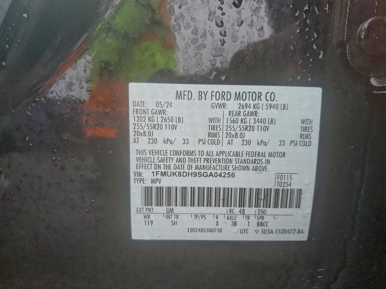 - ВИН: 1FMUK8DH9SG******
