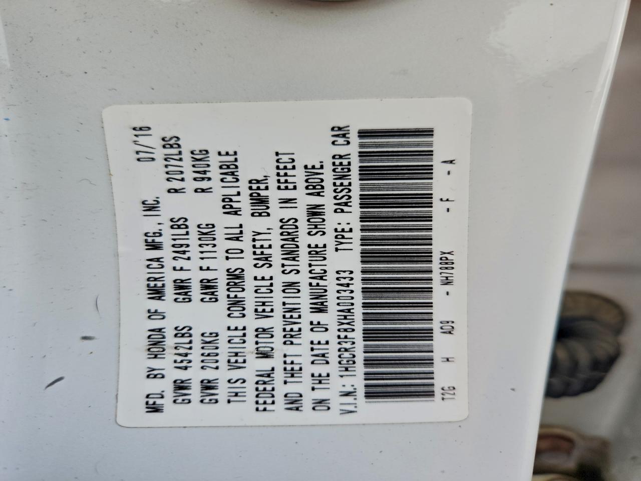 - ВИН: 1HGCR3F8XHA******