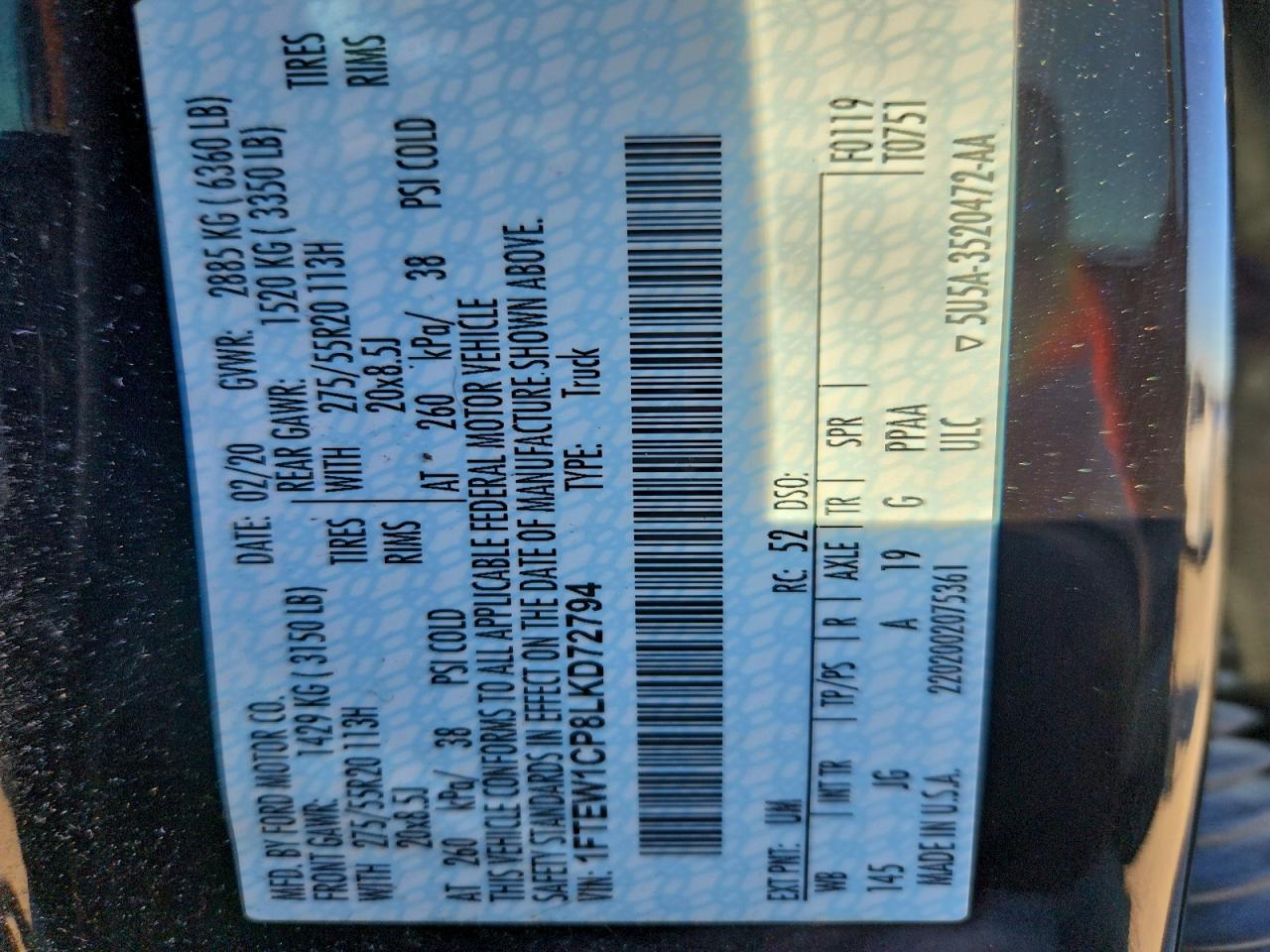 - ВИН: 1FTEW1CP8LK******