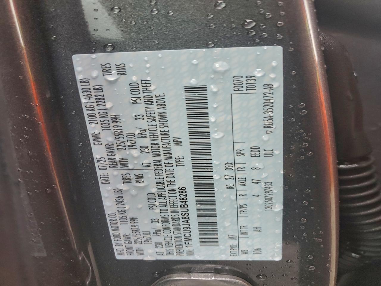 - ВИН: 1FMCU9JA8SU******