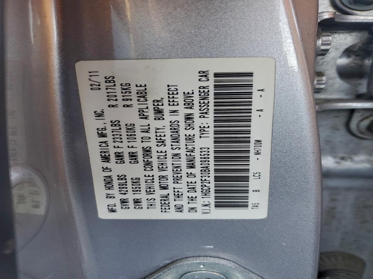 - ВИН: 1HGCP2F30BA******