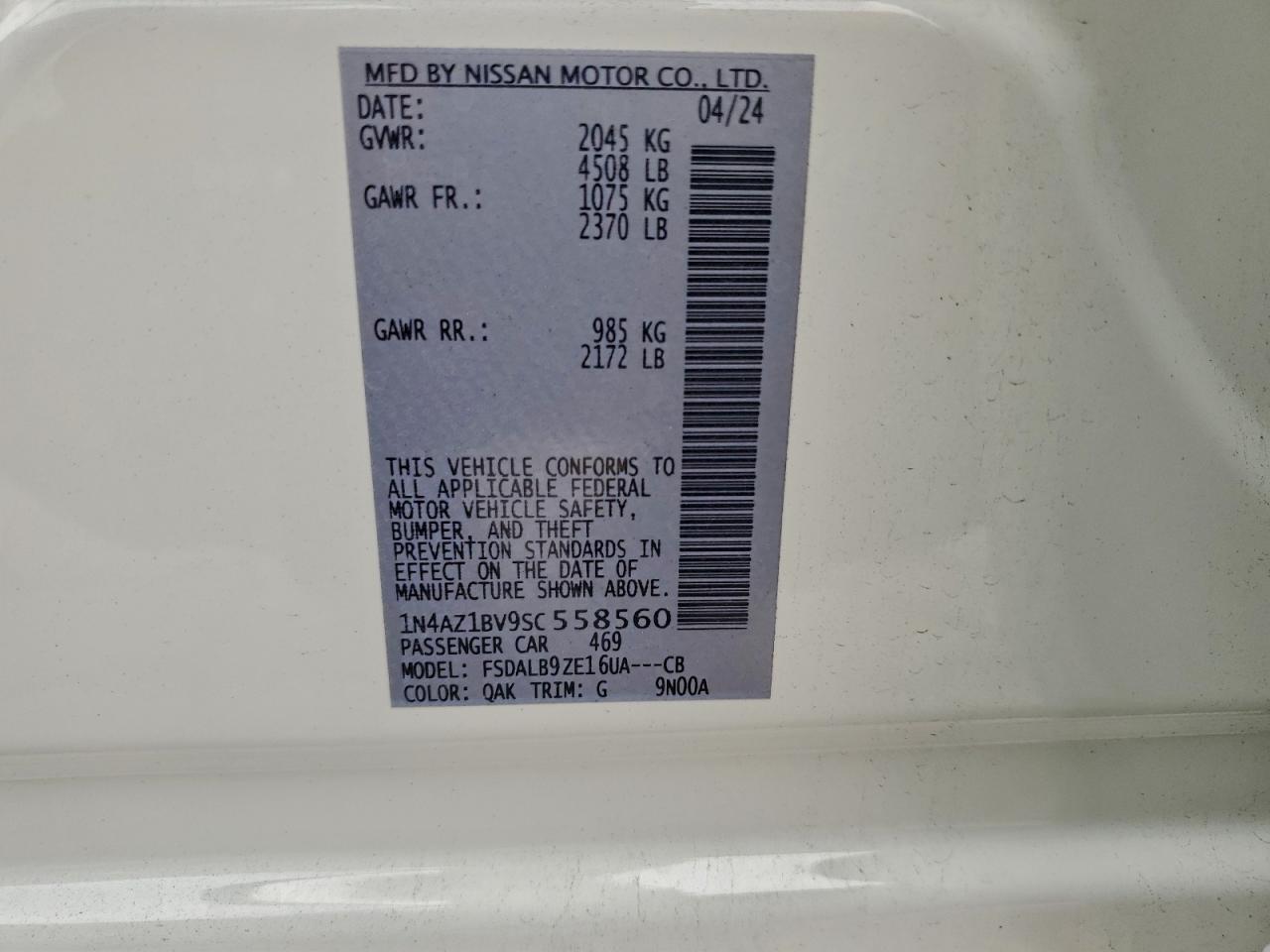 - ВИН: 1N4AZ1BV9SC******