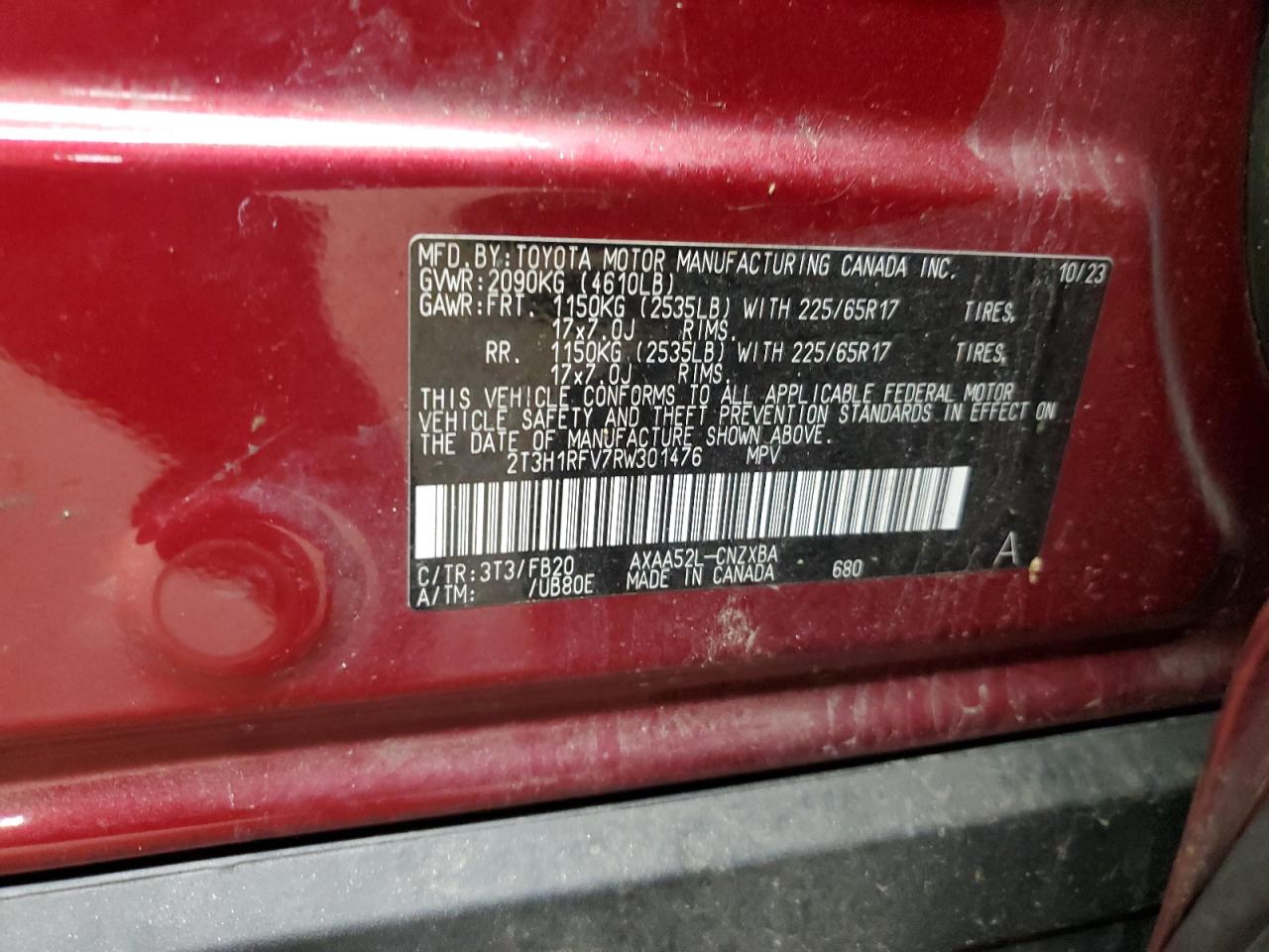 - ВИН: 2T3H1RFV7RW******