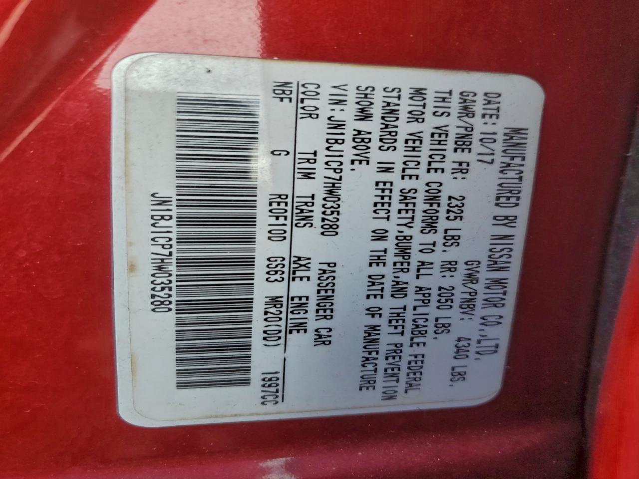 - ВИН: JN1BJ1CP7HW******