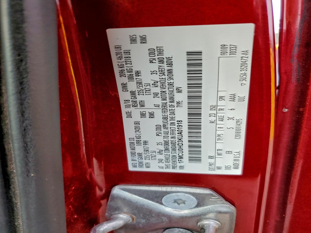 - ВИН: 1FMCU0HD3KU******