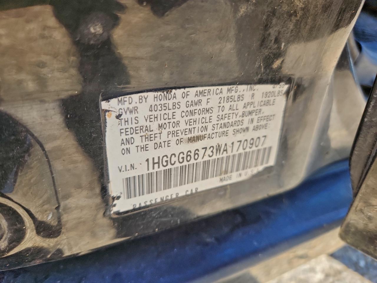 - ВИН: 1HGCG6673WA******