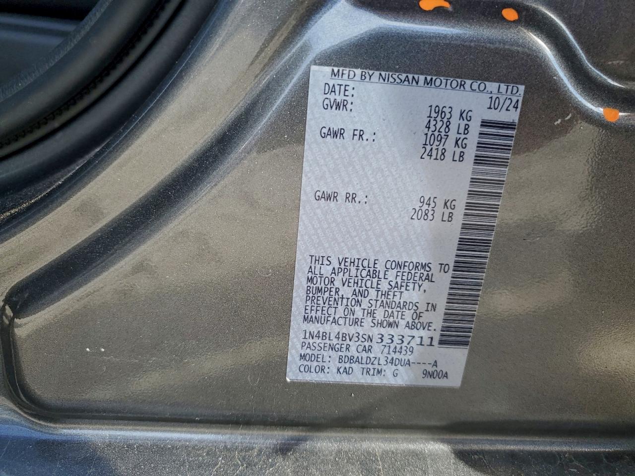 - ВИН: 1N4BL4BV3SN******