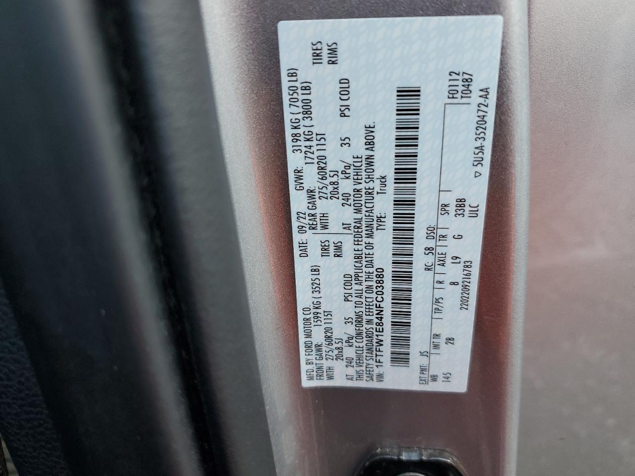 - ВИН: 1FTFW1E84NF******