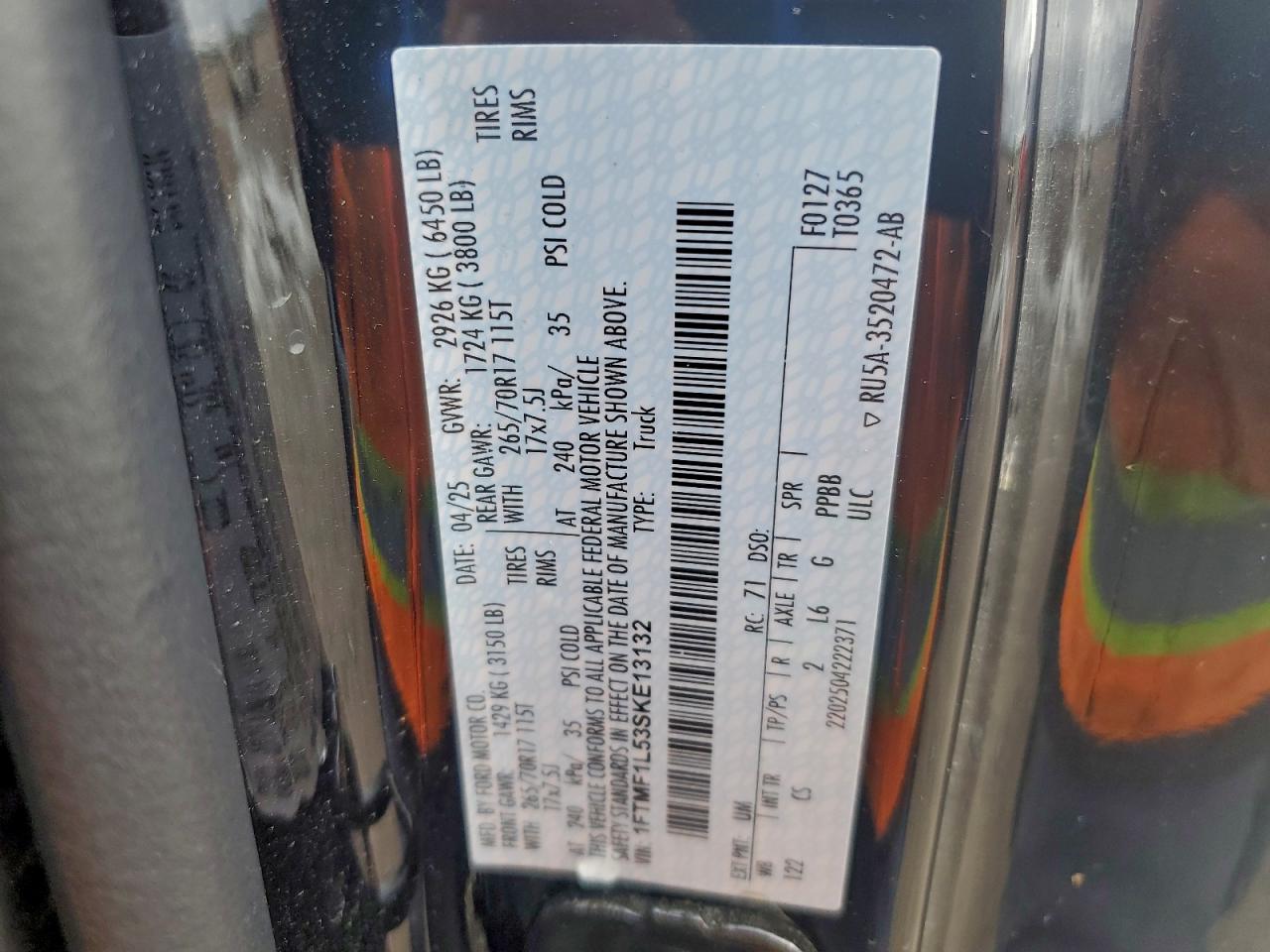 - ВИН: 1FTMF1L53SK******