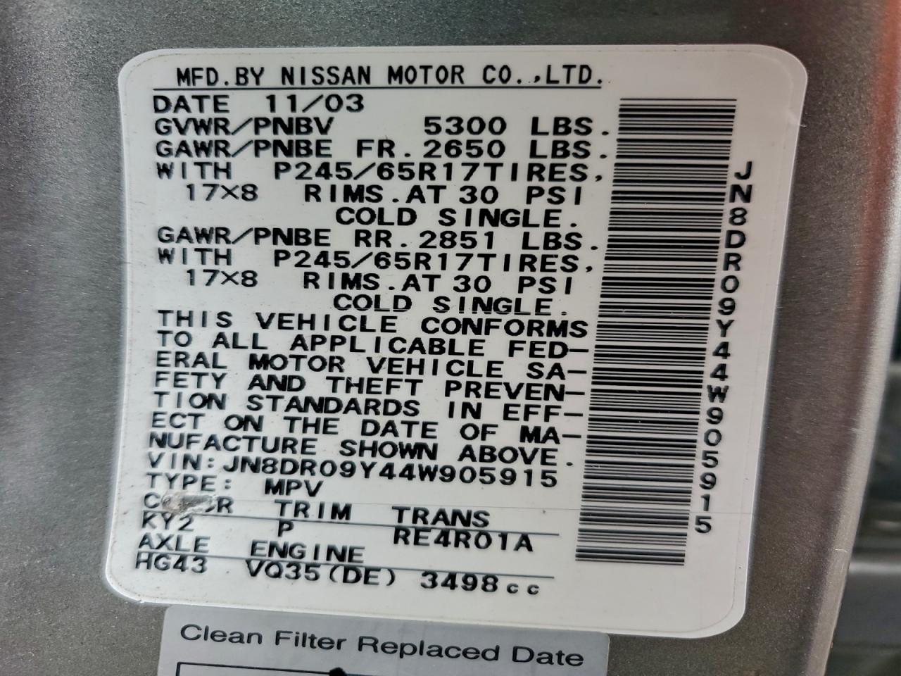- ВИН: JN8DR09Y44W******