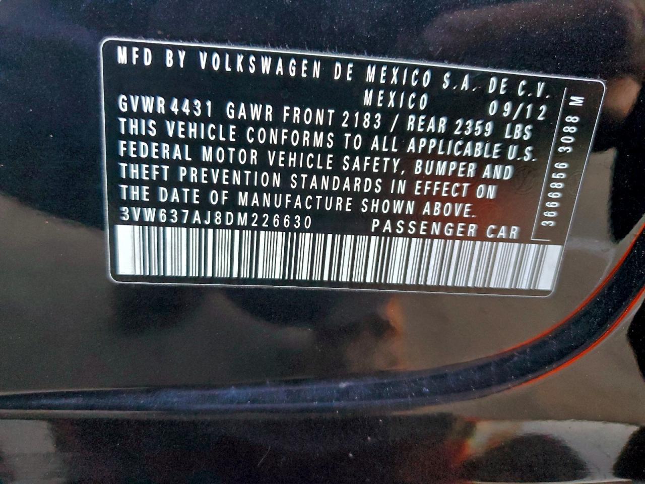 - ВИН: 3VW637AJ8DM******