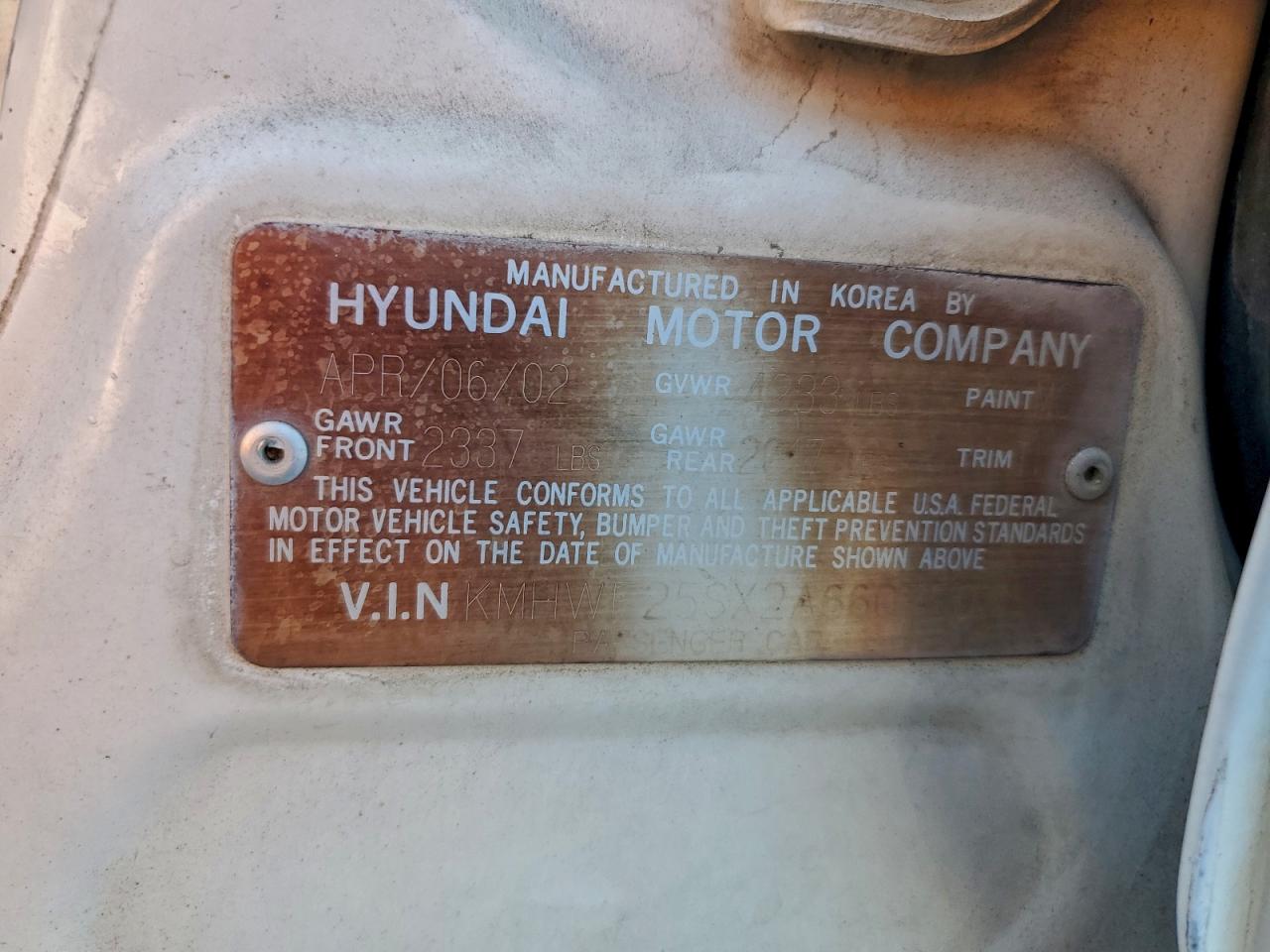 2002 HYUNDAI SONATA GL из США
