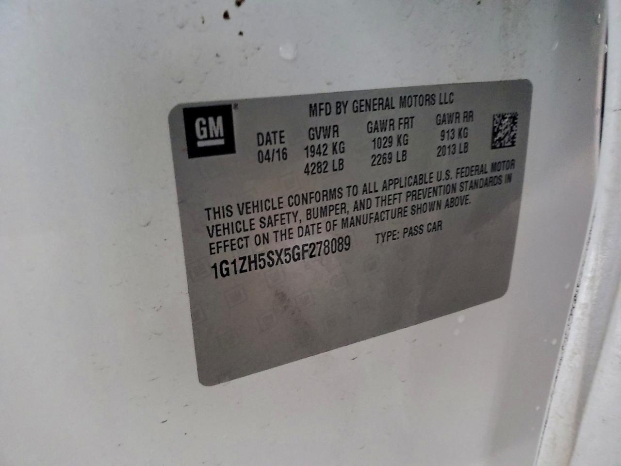 - ВИН: 1G1ZH5SX5GF******
