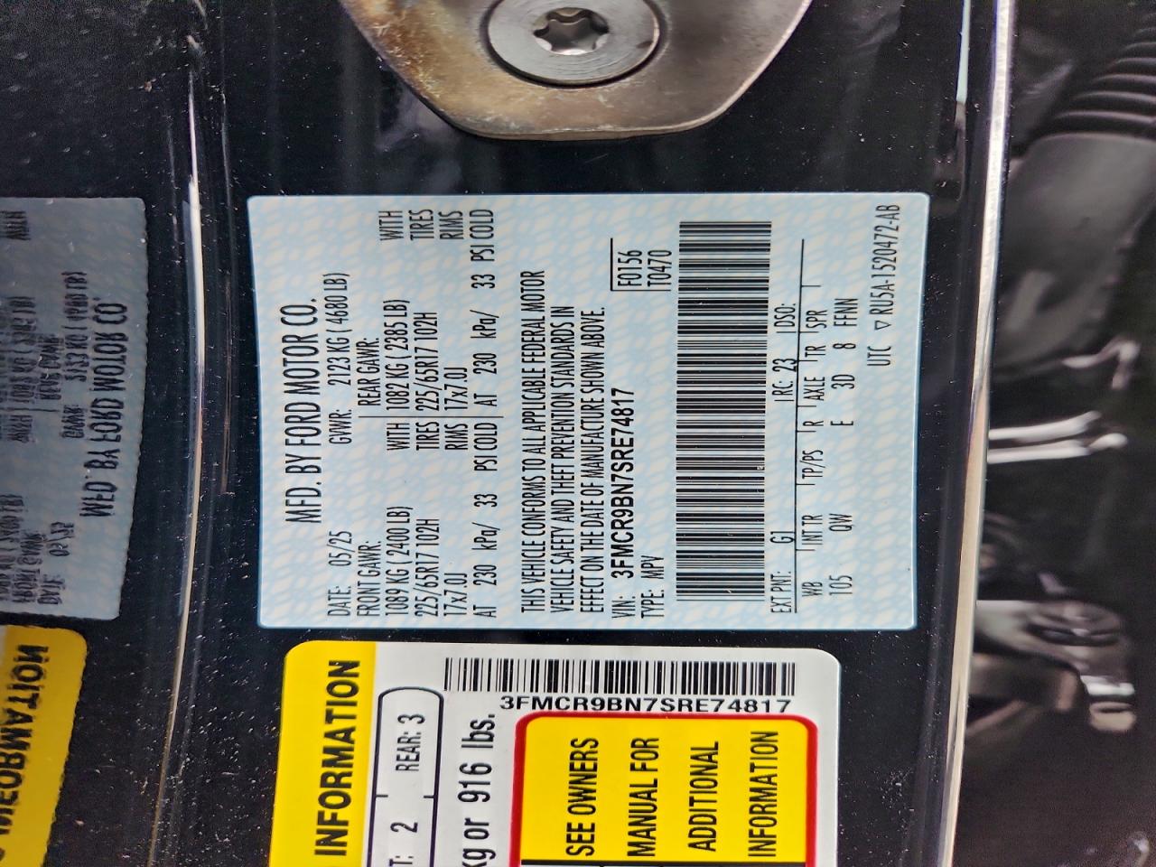 - ВИН: 3FMCR9BN7SR******