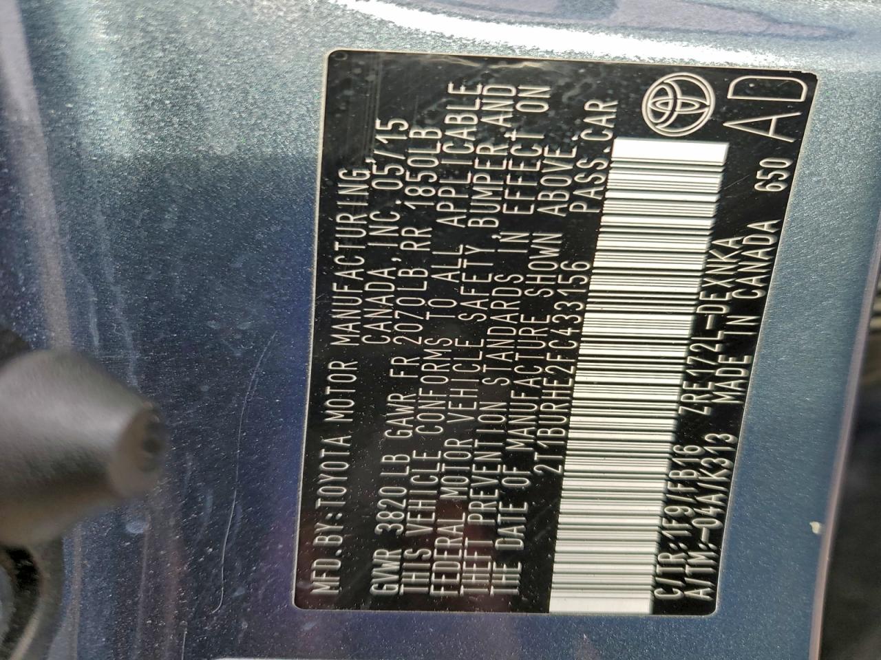 2015 TOYOTA COROLLA L