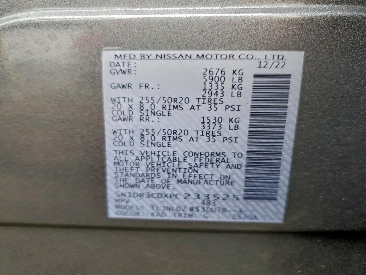 - ВИН: 5N1DR3CDXPC******