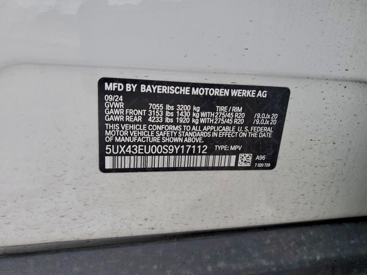 - ВИН: 5UX43EU00S9******