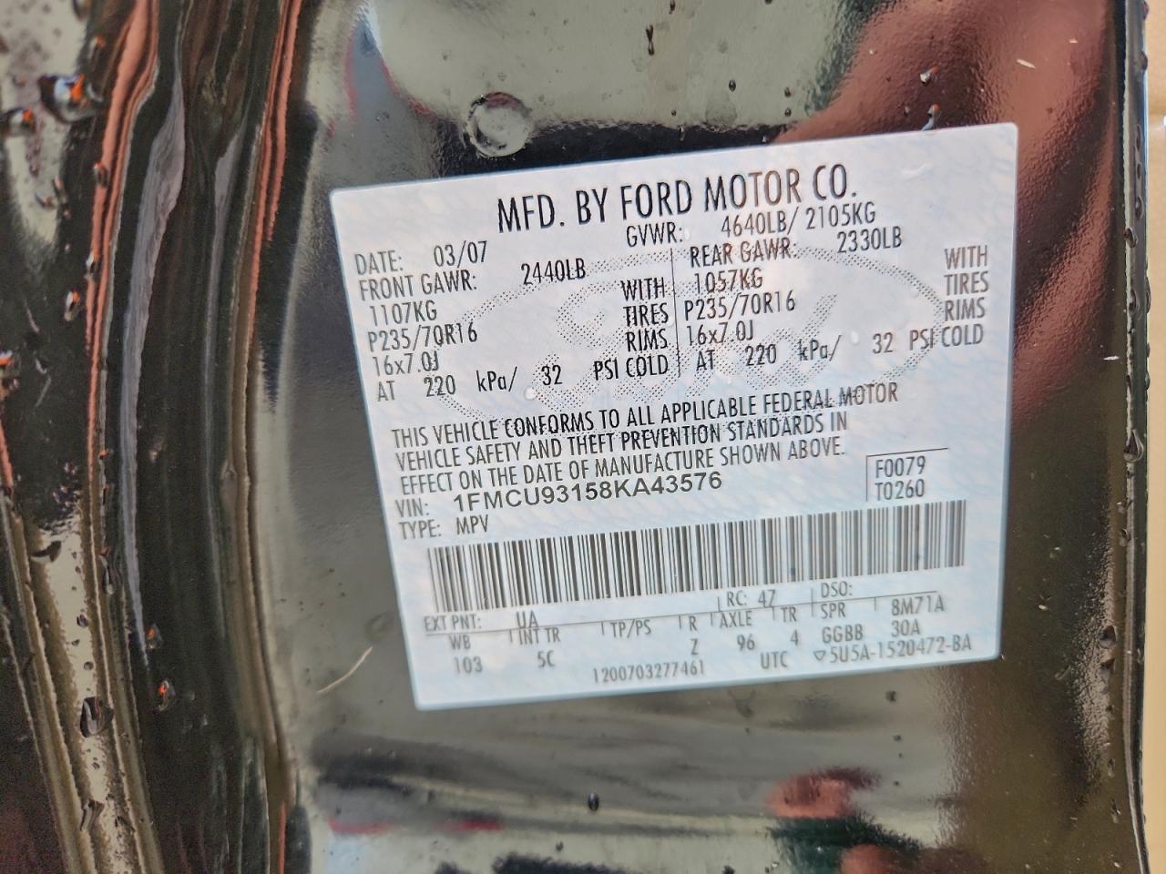 - ВИН: 1FMCU93158K******
