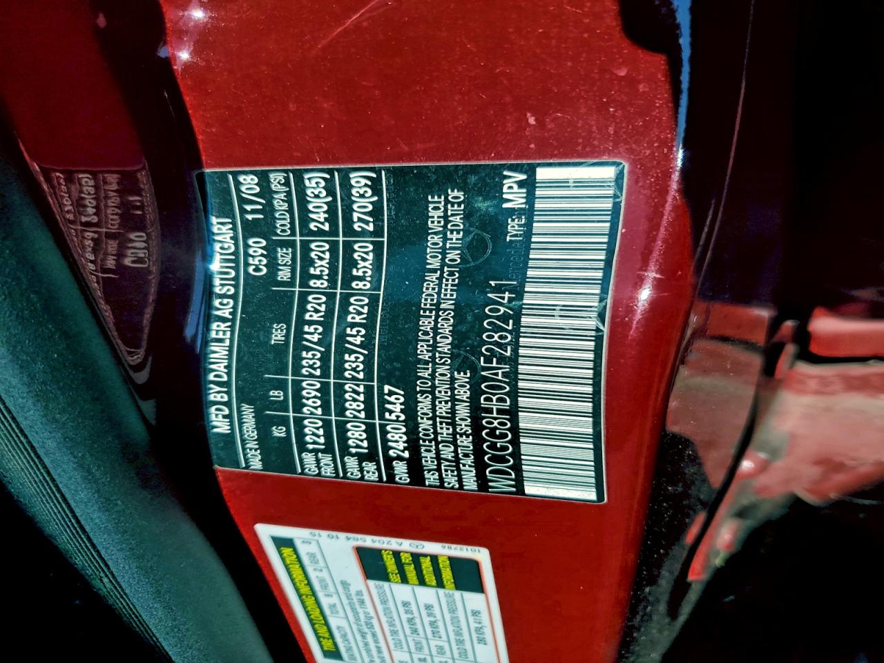 - ВИН: WDCGG8HB0AF******