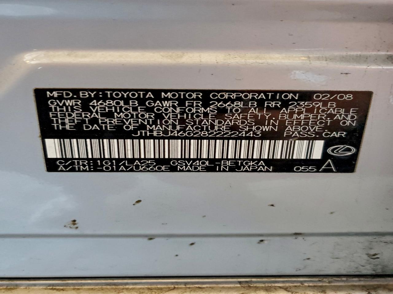 - ВИН: JTHBJ46G282******